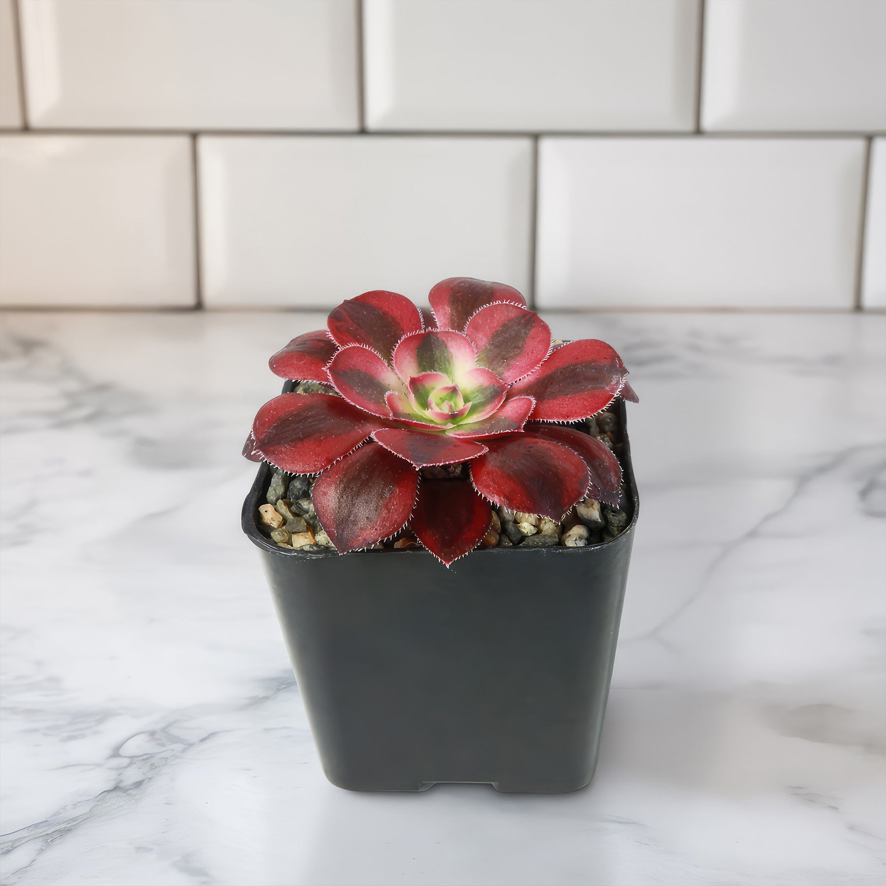 Introducing the Aeonium chanel, which is a stunning Aeonium succulent that captivates with its vibrant rosettes and unique variegation. This Aeonium species is known for its decorative appeal and easy maintenance. With its striking colors and geometric form, Aeonium chanel adds an eye-catching element to any garden or indoor plant collection.