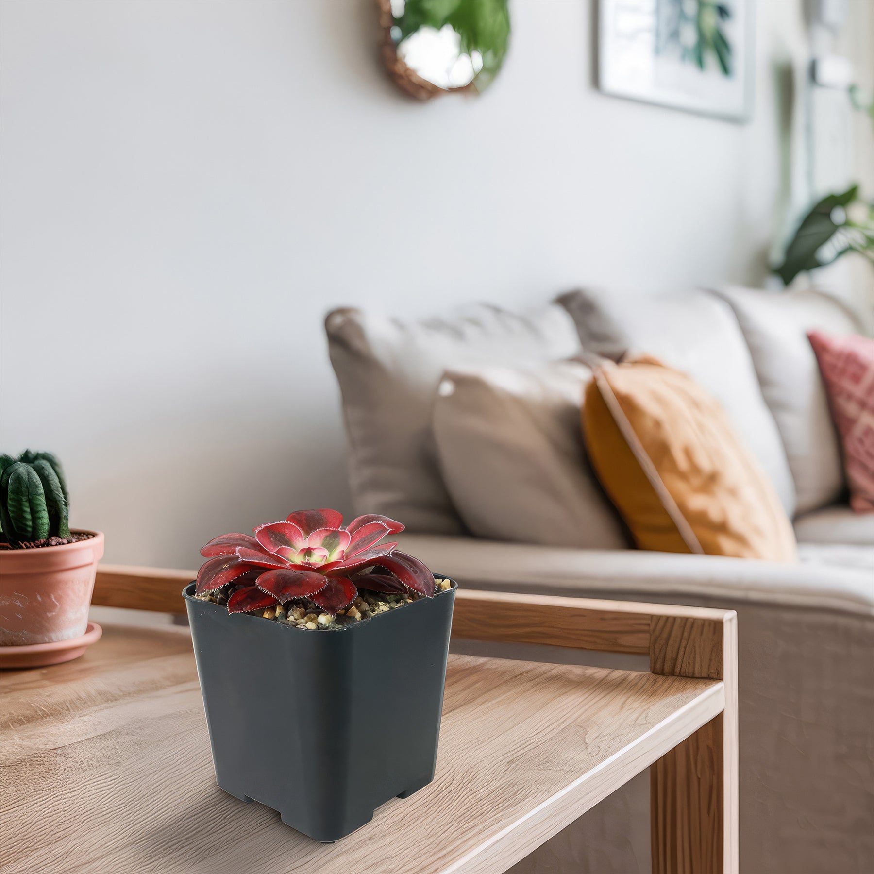 When it comes to care, the Aeonium chanel requires bright, indirect light for at least 4-6 hours daily. The Aeonium plant prefers well-drained specailized succulent soil, to prevent root rot. Watering should be done sparingly; allow the soil to dry out completely between waterings to mimic its natural arid conditions. Indoors, Aeonium chanel prefers temperatures between 65-75°F, while it can tolerate a wider range of temperatures outdoors in USDA zones 10-11. Protect your Aeonium plant from frost, as it is not frost-tolerant.