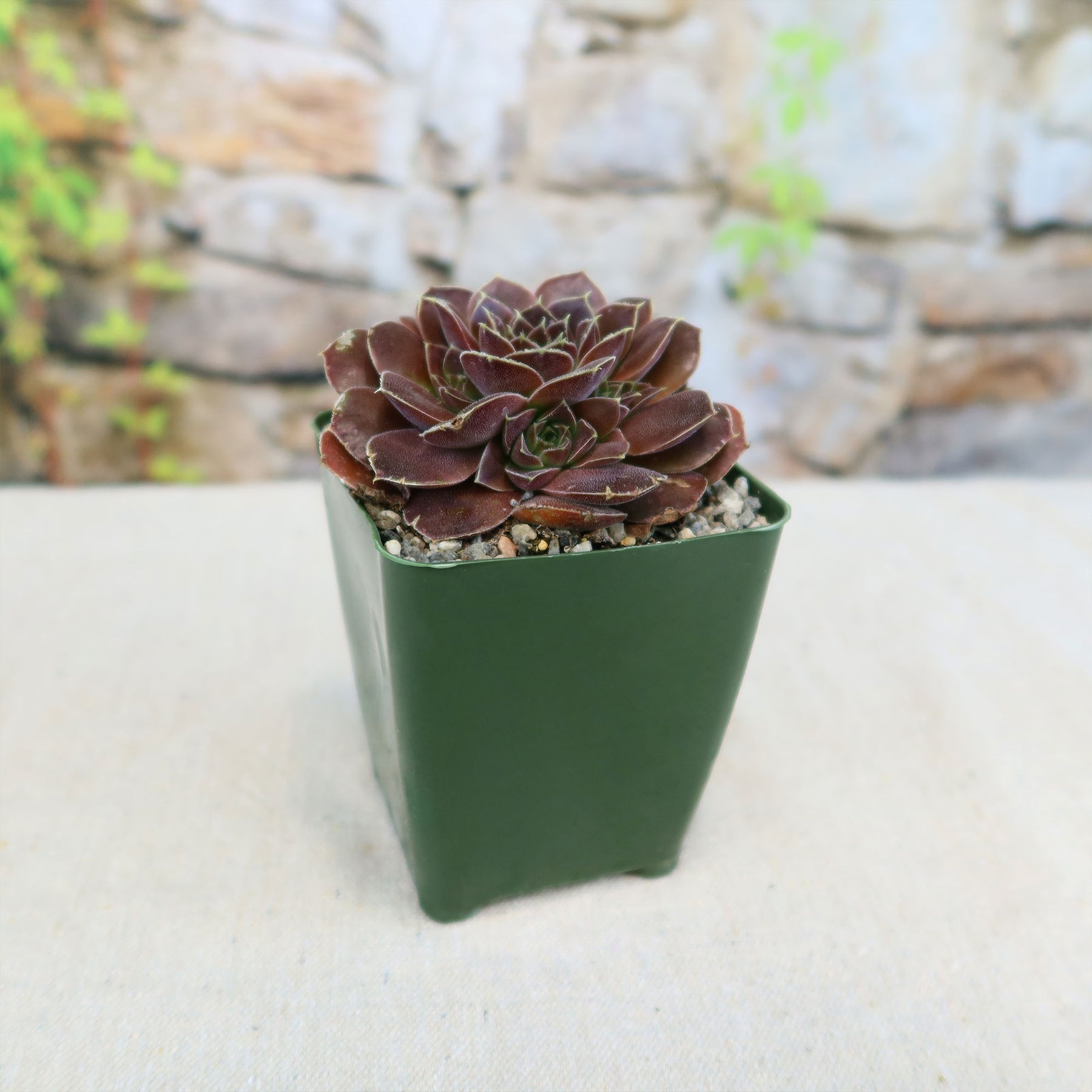 Native to Central Europe, the Sempervivum heuffelii ‘Beaver’ rosette can grow up to 4 inches wide, with thick, pointed leaves that display deep green to burgundy-red tones, especially vibrant during cooler months. The leaf margins are often slightly serrated, adding texture and depth. The rosettes form compact clusters that can spread up to 8 inches wide over time, creating an appealing mat of colorful foliage. This compact habit makes ‘Beaver’ an excellent choice for groundcover in rock gardens or as a filler plant in containers and crevices.