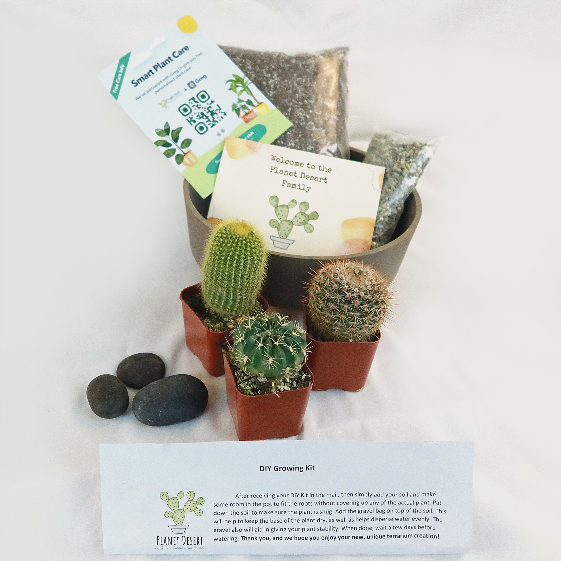 If you are looking for an original gift or a way to use cacti to decorate your home, our DIY planter is perfect. Kit contains: