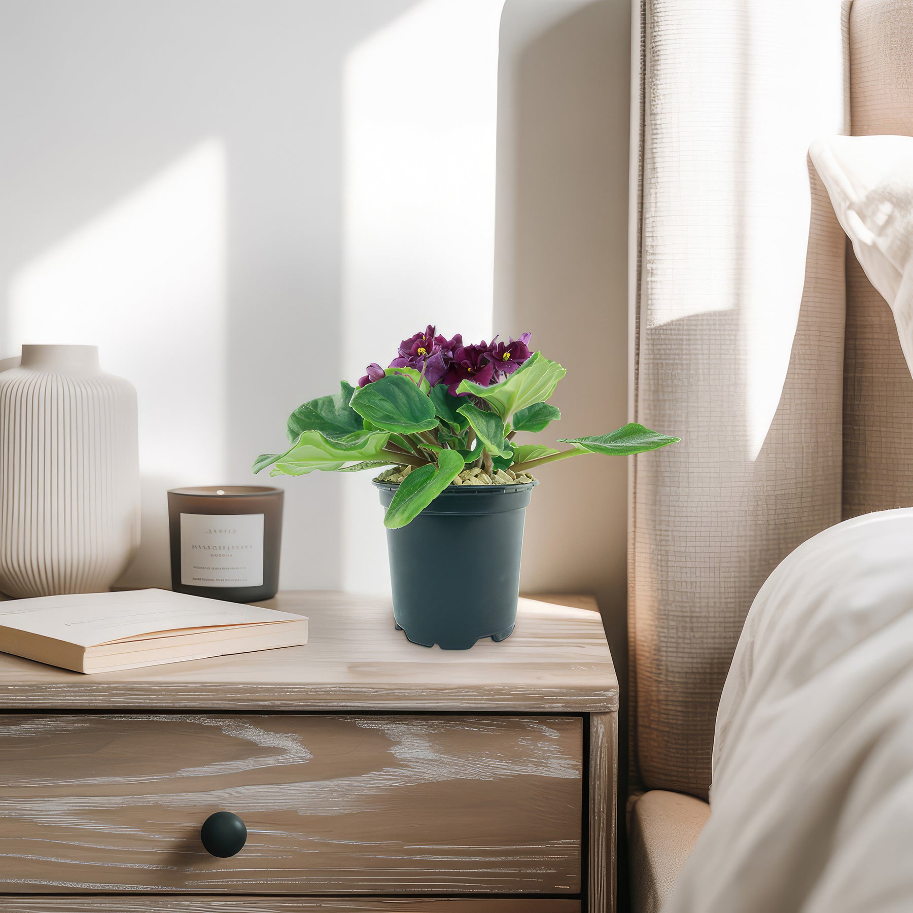 Overall, the Burgundy African Violet is a low-maintenance, pet-safe, and visually stunning plant that thrives indoors and rewards its caretaker with vibrant, long-lasting blooms. Whether displayed solo in a decorative pot or grouped with other colorful varieties, it brings a timeless elegance and cheerful energy to any room. With the right care, this striking variety will continue to bloom and brighten your home year-round.