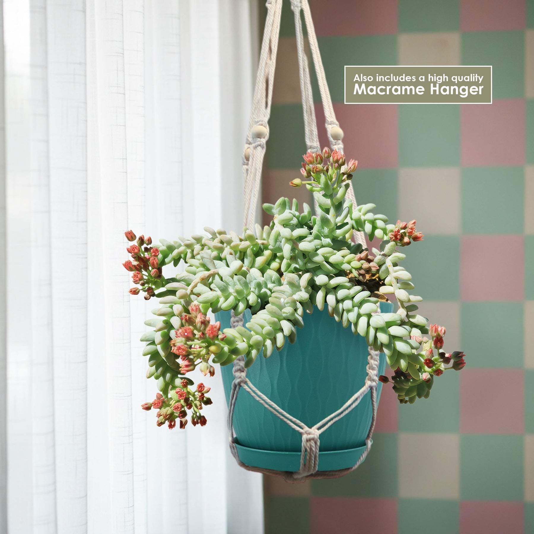 Overall, the burro's tail succulent (Sedum burrito), with its cascading stems and plump, trailing leaves, adds a distinct and eye-catching element to any space. This succulent is not only visually appealing but also easy to care for. Its ability to store water in its leaves allows it to withstand periods of drought, making it a low-maintenance choice for plant enthusiasts. Whether you choose to hang it on a macramé hanger or let it spill over the edges of a pot, the burro's tail succulent is sure to bring a touch of natural beauty and charm to your home or rock garden.
