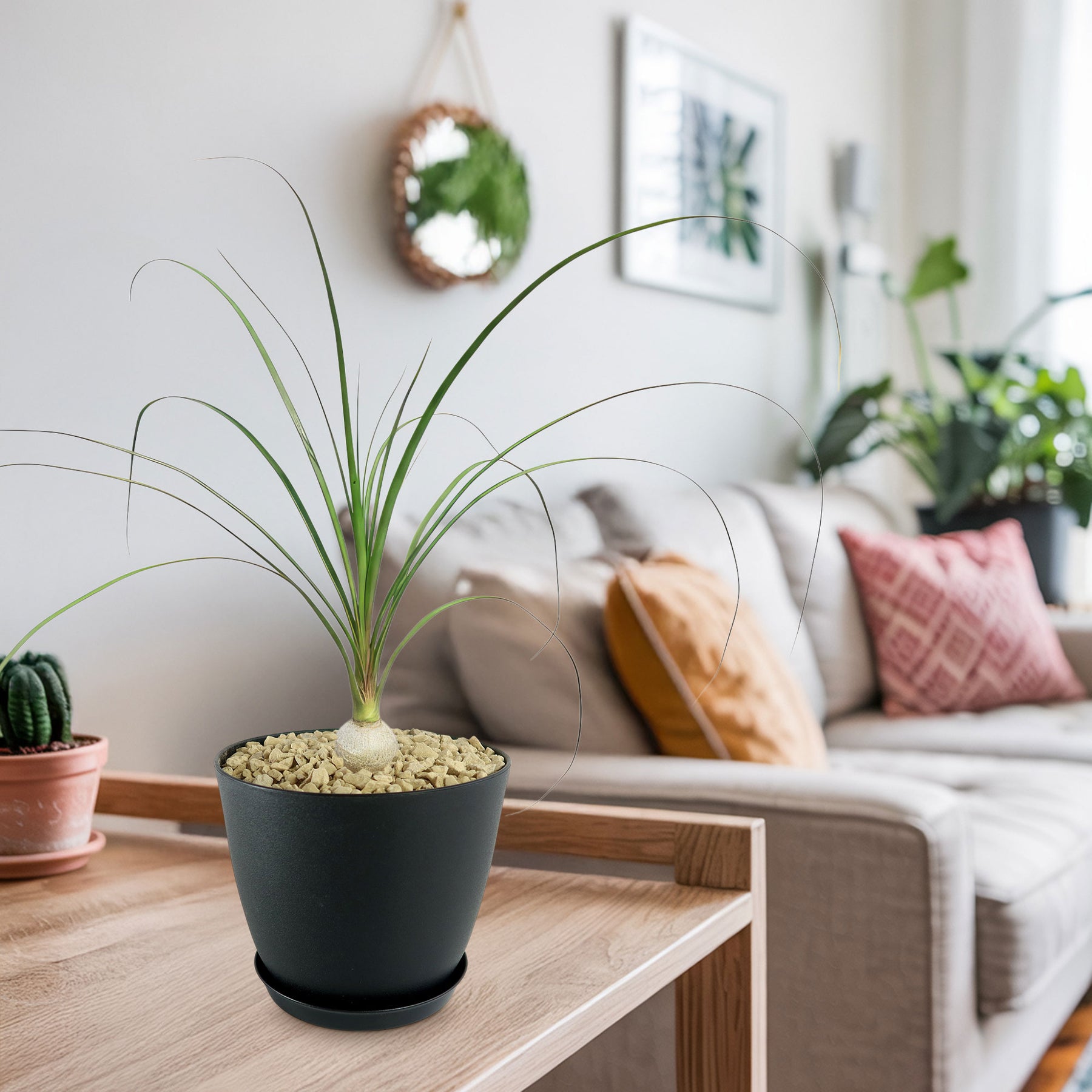 This stunning ponytail palm succulent boasts unique features, such as long, slender leaves that cascade gracefully from its bulbous trunk.