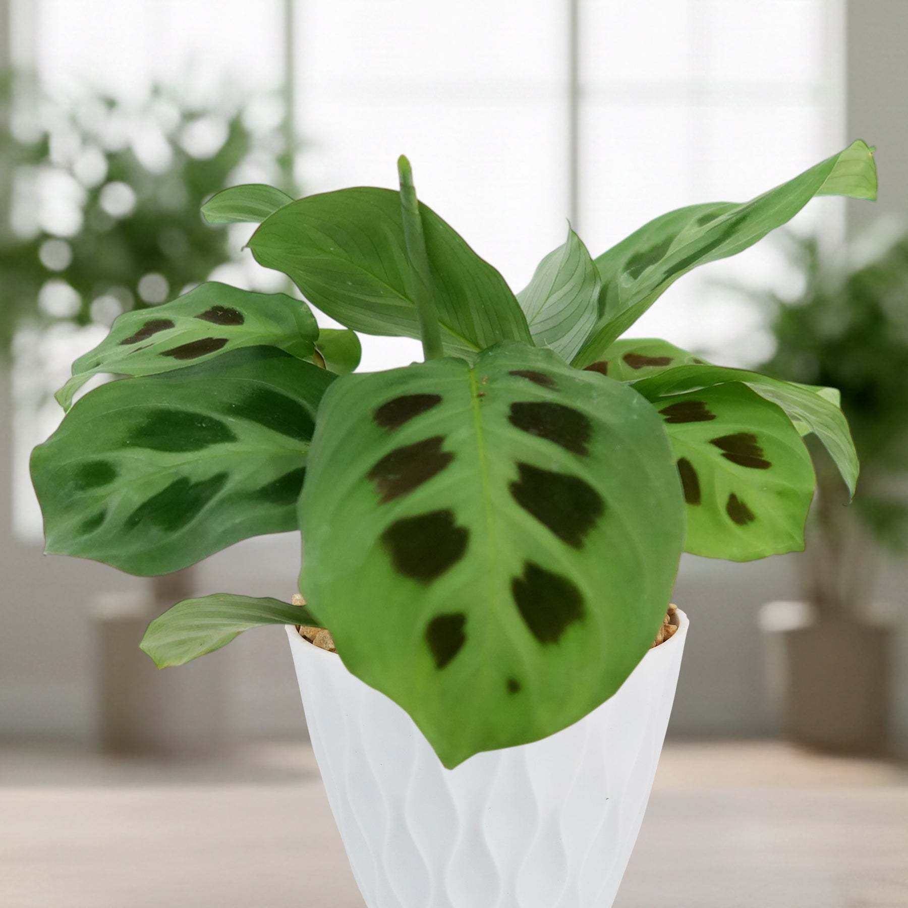 Overall, the prayer plant (Maranta leuconeura) is a captivating houseplant known for its stunning foliage with intricate patterns that fold up at night, resembling praying hands, hence its name. This plant not only adds a touch of elegance to indoor spaces but also attracts pollinators with its charming flowers. To care for your prayer plant, ensure it receives indirect light, consistent moisture, and high humidity levels. Avoid direct sunlight and overwatering to prevent root rot. Regularly misting these indoor plants and occasionally wiping their leaves with a damp cloth can help maintain their lush appearance. By providing the right conditions and attention, you can enjoy the beauty of the prayer plant while creating a healthy environment for it to thrive in your home. Order your very own prayer plant for sale today!