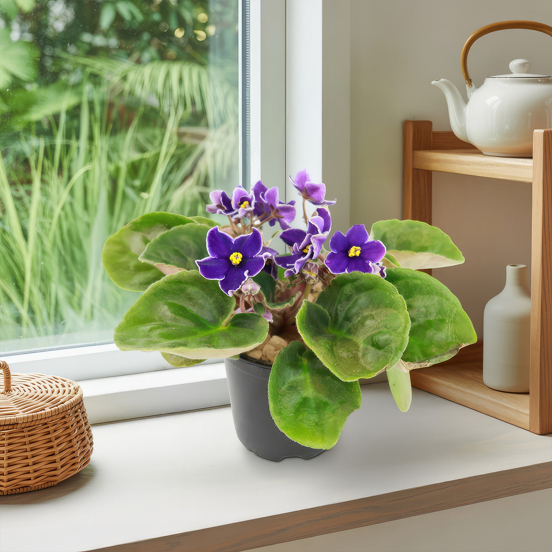 Mature African Violets purple stays compact, typically reaching 12 inches wide and up to 8 inches tall, making them ideal for small containers or decorative planters.