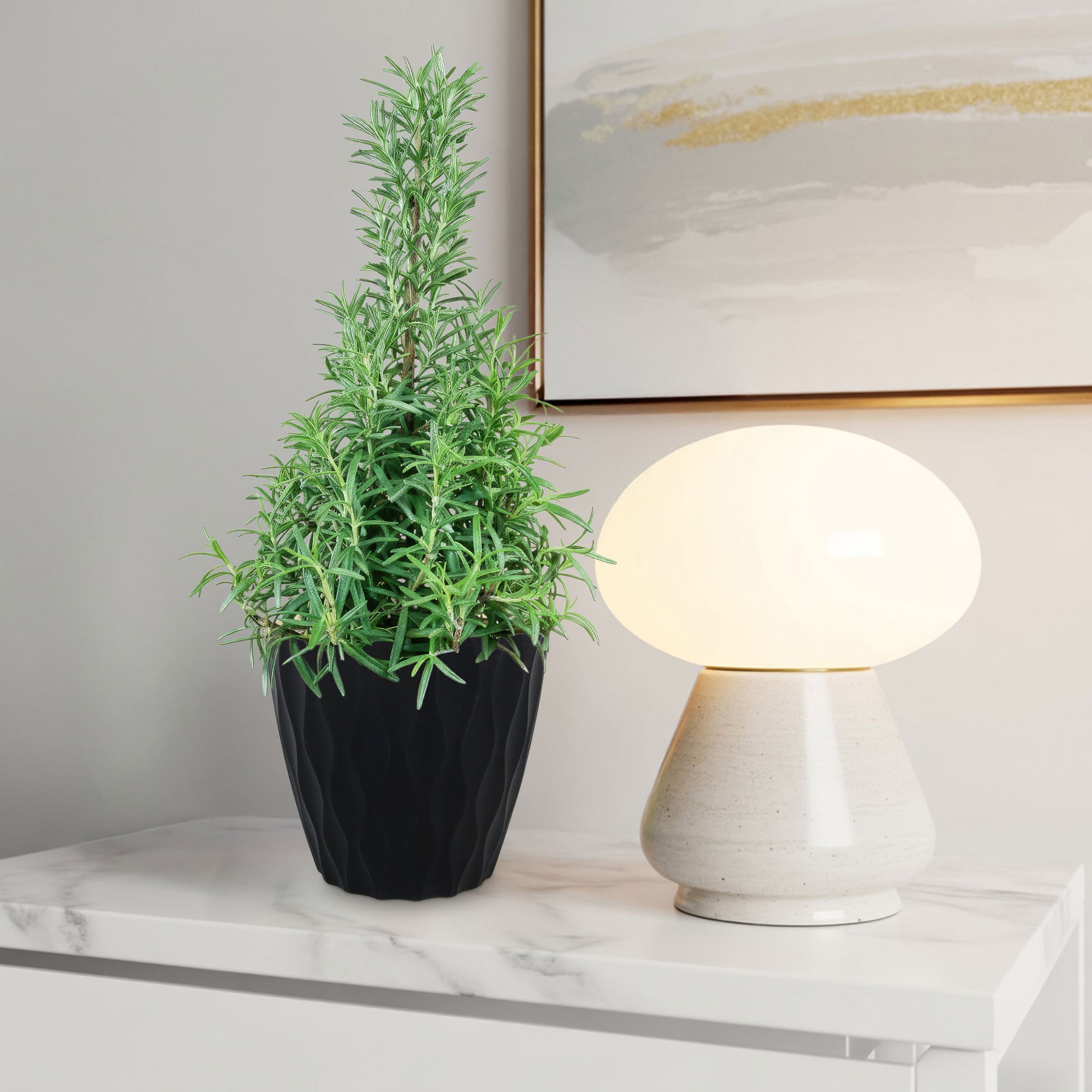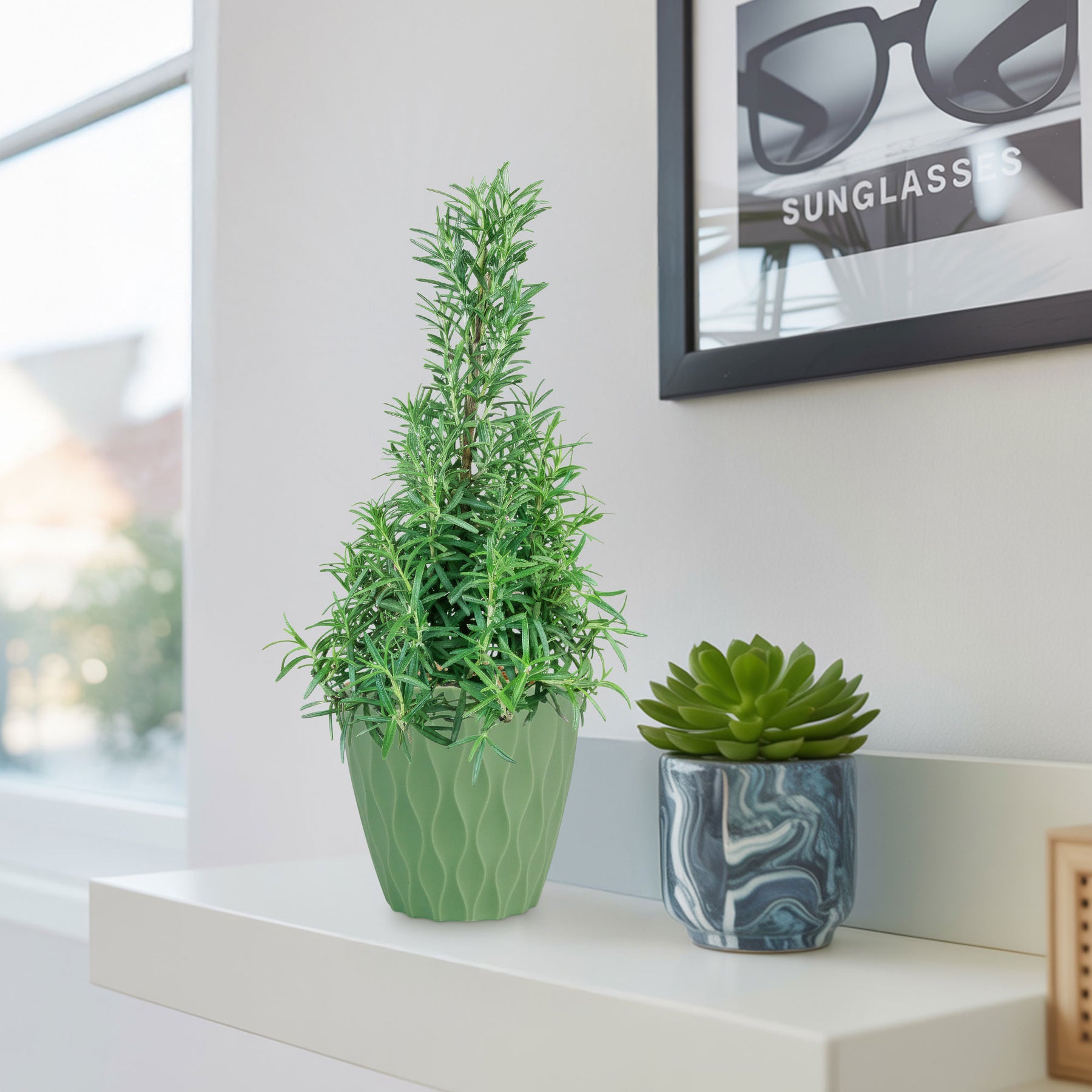 Native to the Mediterranean region, Rosemary's strong, pine-like aroma and needle-like leaves that are rich in essential oils, make it an excellent choice for adding both greenery and a pleasant scent to homes, especially around the holidays.