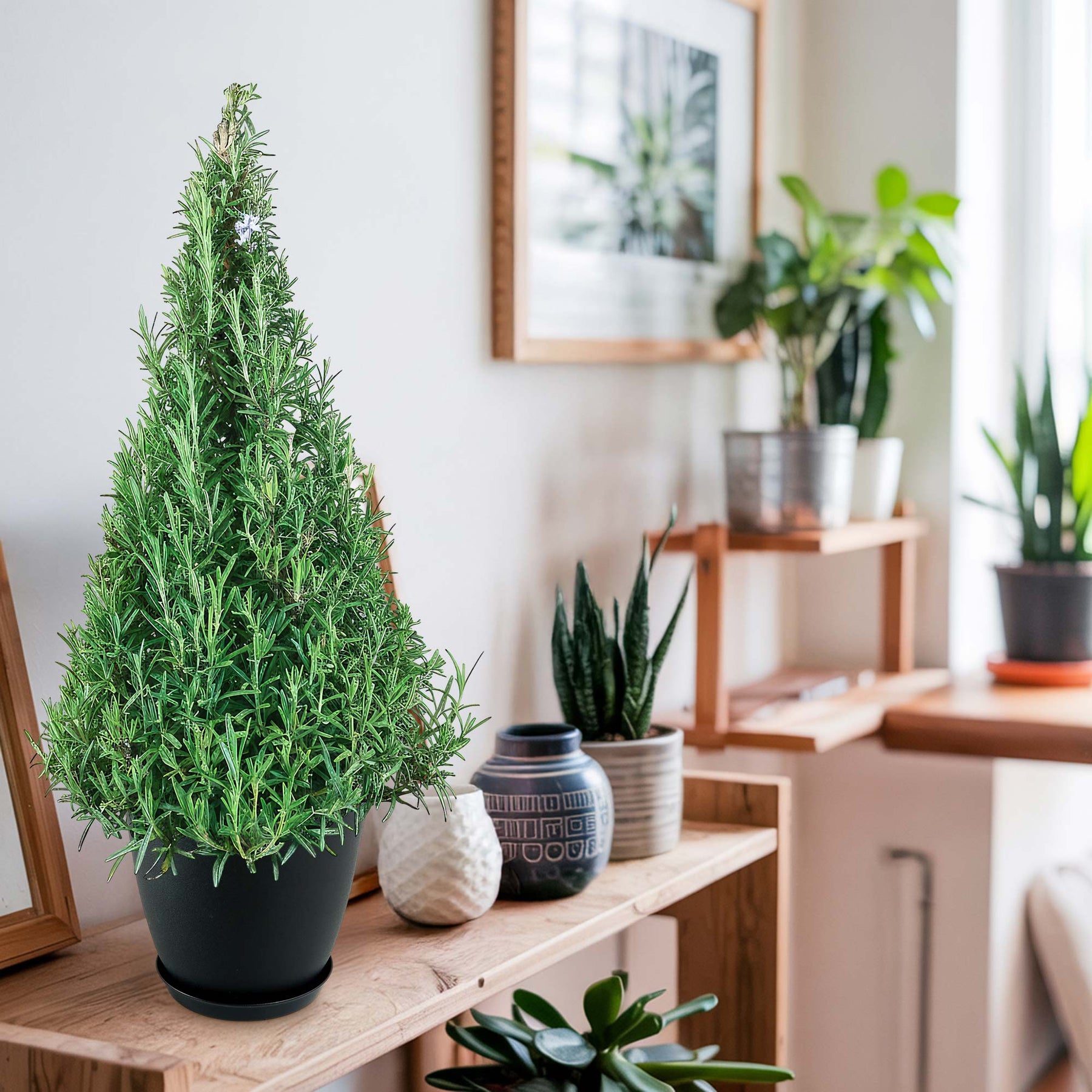 The Rosemary Christmas Tree, known as Salvia rosemarinus, is a holiday plant and aromatic evergreen shrub that has been expertly pruned to resemble a mini Christmas tree. This unique shape has made it increasingly popular during the holiday season, where it is often used as a festive decoration or as a fragrant alternative to traditional holiday trees.