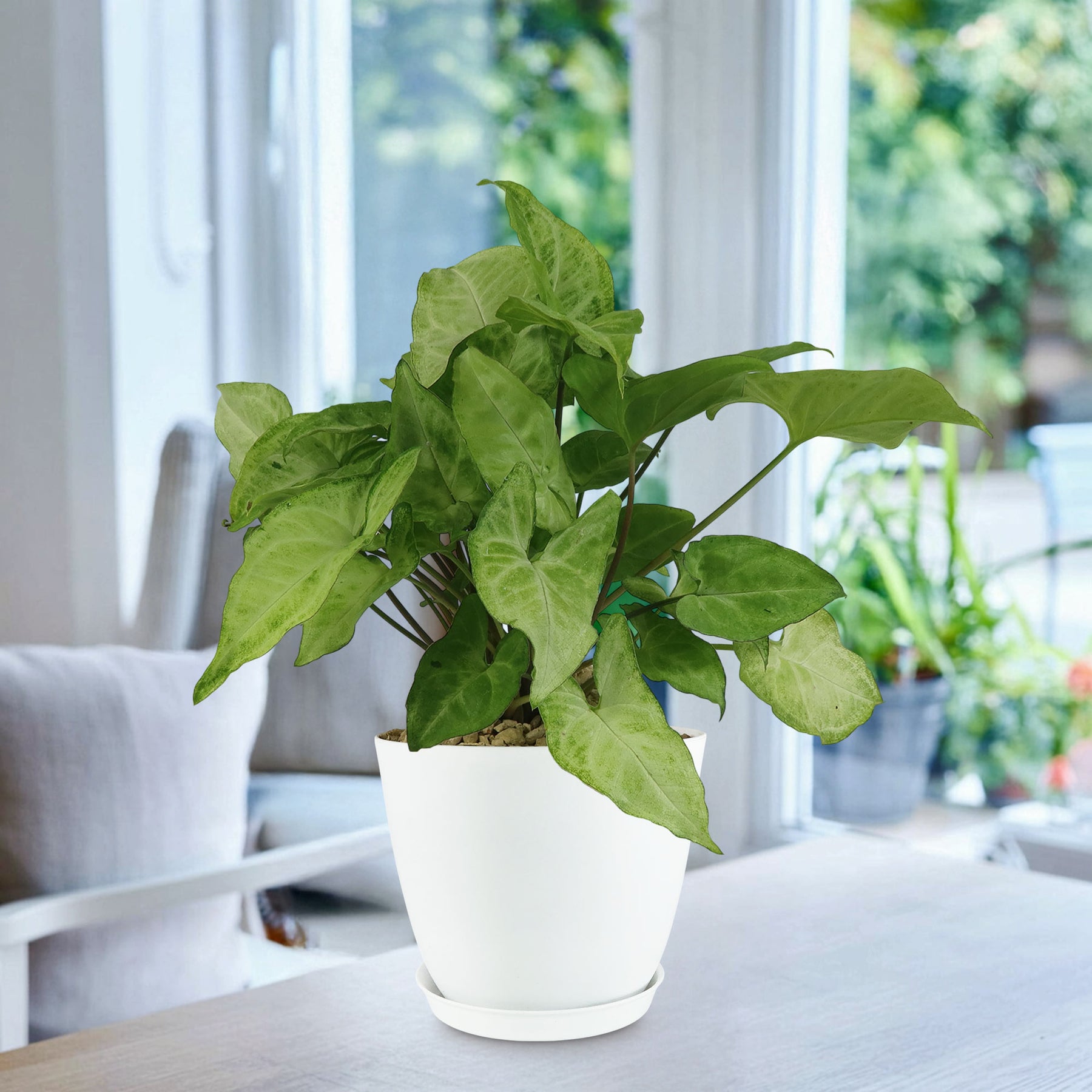 For outdoor cultivation, the Syngonium White Butterfly thrives best in partial shade or dappled sunlight, but it can tolerate some gentle direct sunlight, ideally in the morning.