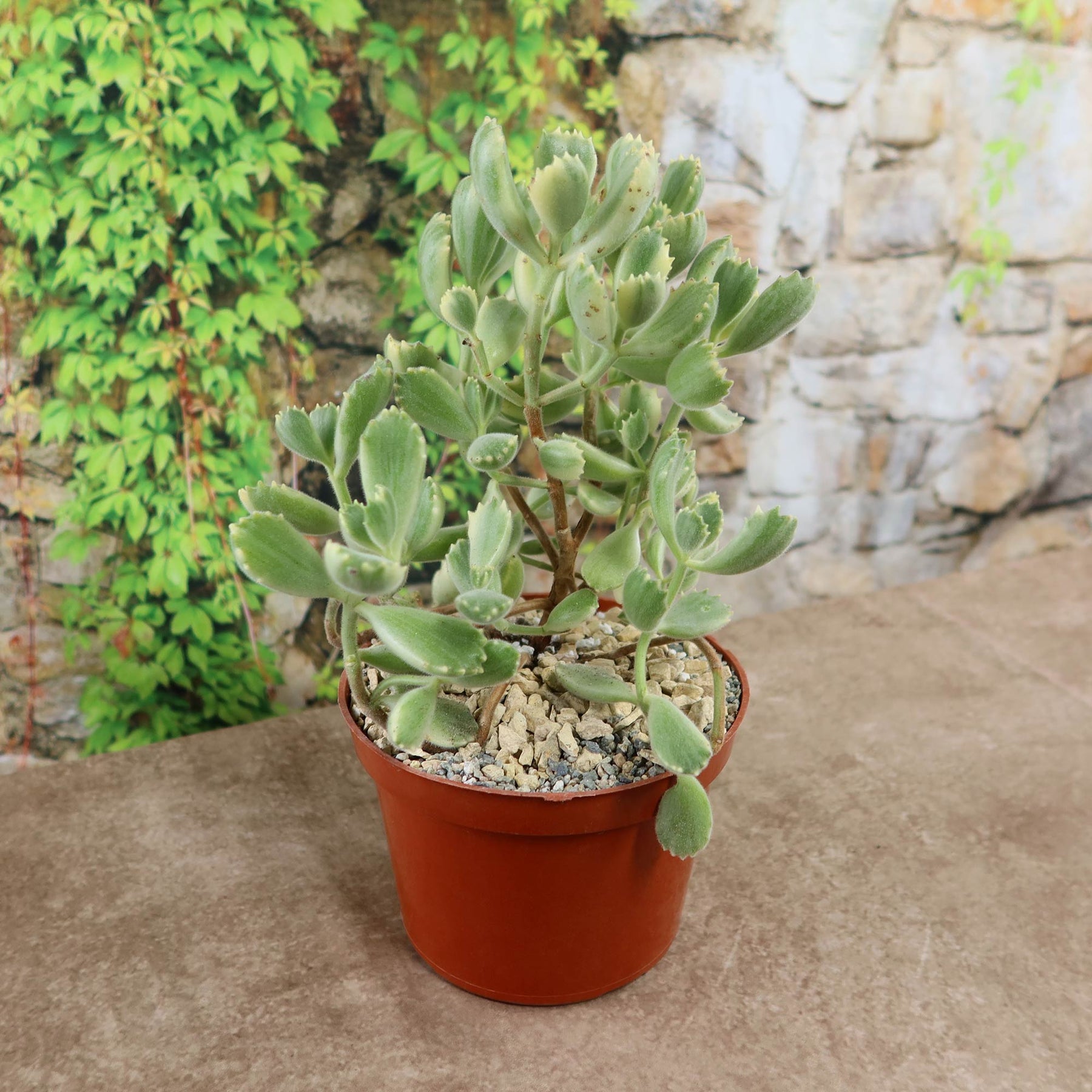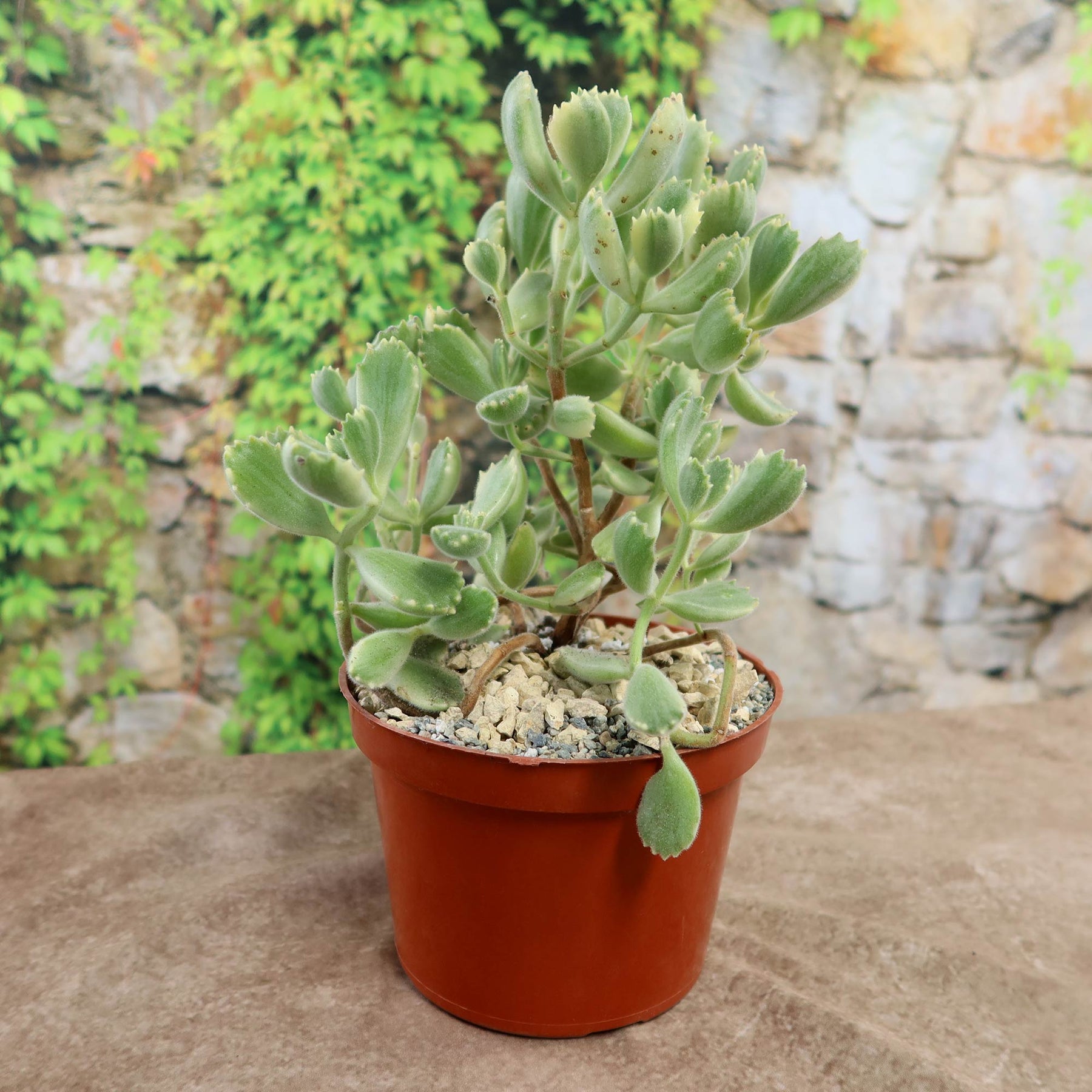 Overall, the Variegated Bear Paw (Cotyledon ladismithiensis variegata) is a fascinating cotyledon succulent that captures attention with its bear paw-like leaves and beautiful variegation. It's a real standout in any succulent collection, adding a touch of whimsy and charm. With its fuzzy texture, unique leaf shape, and occasional bell-shaped flowers, this plant is truly a delight to behold. This bear paw succulent requires bright, indirect sunlight and well-draining soil to thrive. To avoid root rot, water sparingly and let the soil dry out entirely in between watering. Additionally, these plants benefit from occasional misting to increase humidity levels. Give it a try and enjoy the beauty and intrigue this unique variegated bear paw brings to your home or garden.